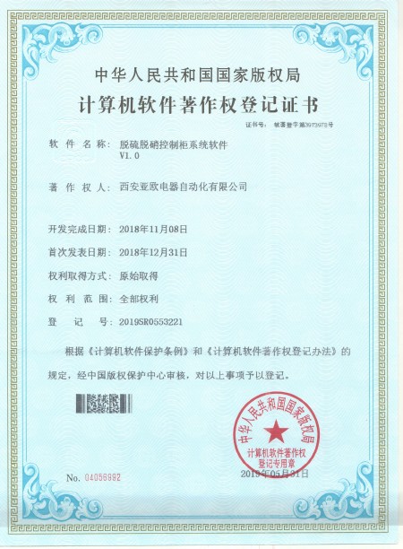 - 關于我們 - 資質榮譽 - 脫硫脫硝控制柜系統軟件